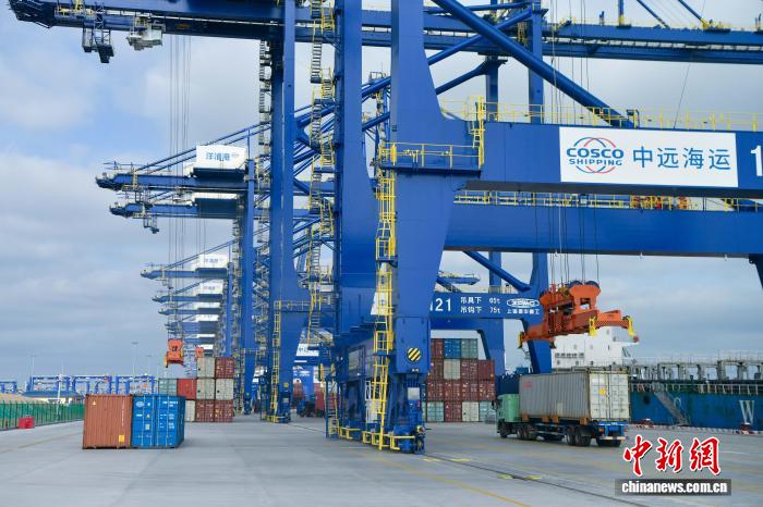 图为洋浦国际集装箱码头。 中新网记者 骆云飞 摄