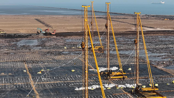 该项目位于黄骅港散货港区仓储区域,总占地面积46.91公顷,总投资25.72亿元,年设计通过能力达1600万吨,是黄骅港落实国家运输结构调整战略、保障区域铁矿石供应链稳定的重点工程。施工现场,插板机高效作业,排水板有序布设,施工队伍抢抓工期、精细施工,以实干快干掀起新春建设热潮。