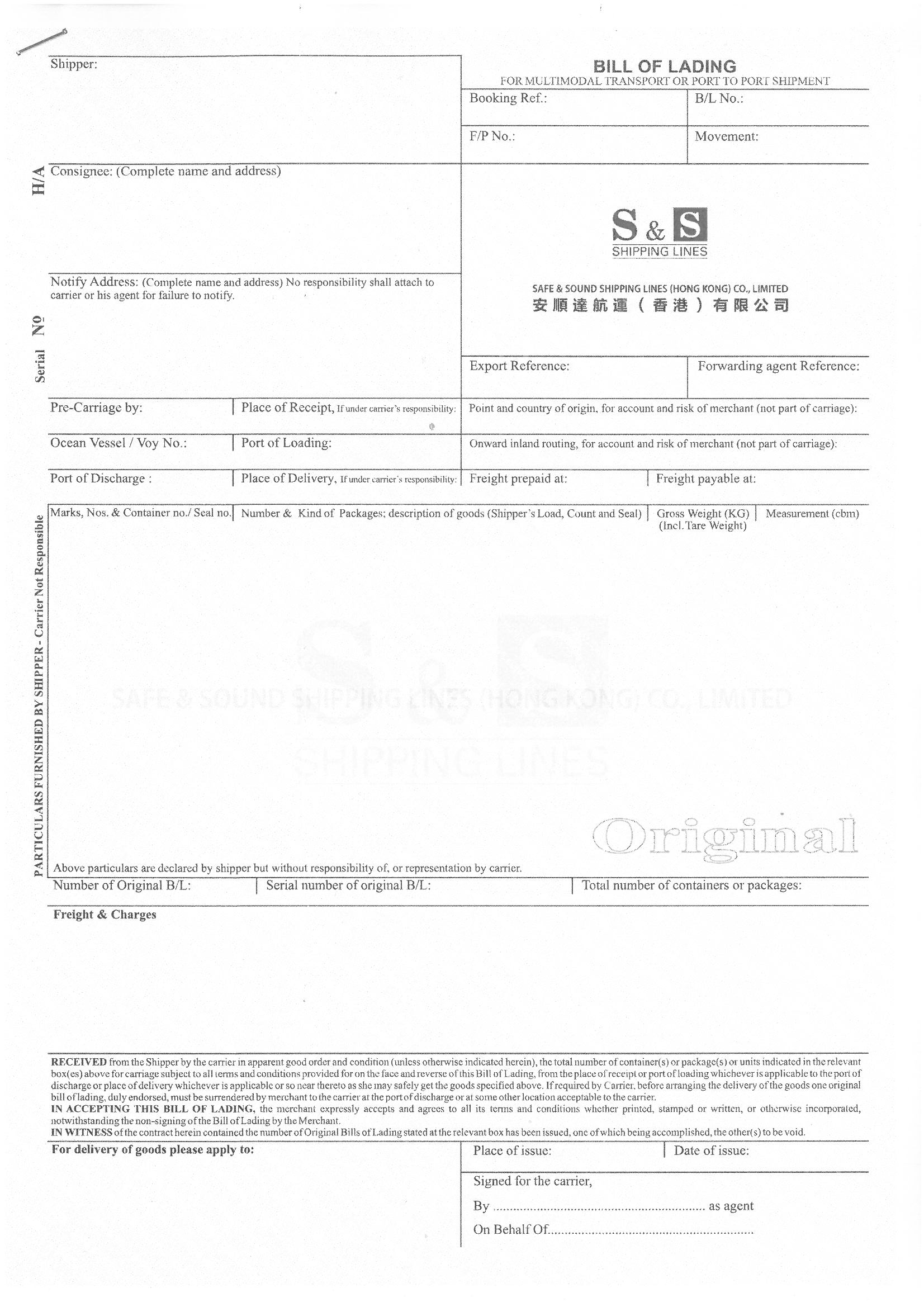 SAFE & SOUND SHIPPING LINES(HONG KONG)CO.,LIMITED | ||
