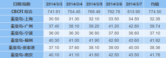 截至本周五,CBCFI综合收于813.9点,较上周上涨12.06%,本周CBCFI平均值比上周上涨9.98%,其中,各分航线皆稳中有涨,各分航线均值涨幅分别为14.09%,11.57%,6.98%,9.85%,7.51%,9.61%。沿海煤炭运输市场的节日因素已经逐渐褪去,下游商家补库存积极。