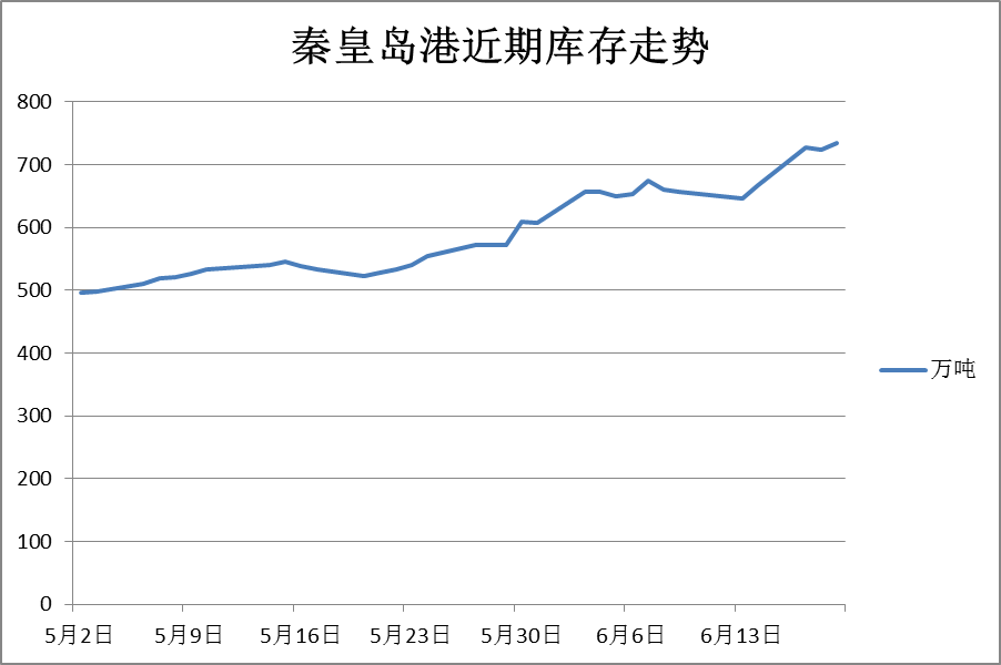 截止至6月18日环渤海地区5500大卡的动力煤综合平均价格报收607元/吨,比前一期报告下降了3元/吨。从环渤海动力煤价格指数中心获悉,此次价格下降港口规格品种数量所占比重明显提高,兵超过了板书,该地区动力煤价以价格再度呈现下行趋势。为何动力煤每周报指数每周下跌已成为一种“固定节目”了呢。我们认为高位运行的煤炭进口数量,持续偏低的电煤消费水平,再加上各发运港口持续增加的煤炭库存以及长期以来明显偏低的锚地船舶数所体现的动力煤需求低迷局面,正是导致煤价一跌再跌得必然因素。