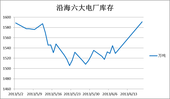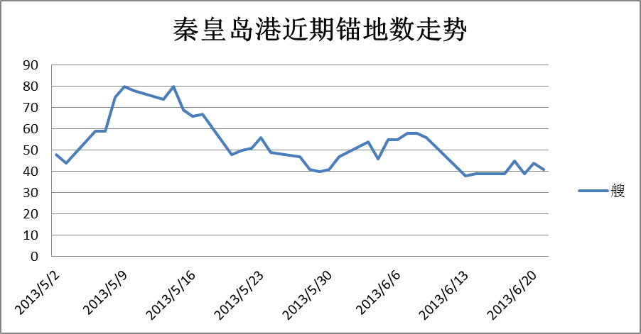 从6月10日至6月16日,环渤海煤炭库存量由1818.8万吨增加到1881.5万吨,短短一周时间增加62.7万吨,增幅达3.44%。截止6月21日,秦皇岛港库存713万吨,锚地数41艘。虽然说秦皇岛港口目前和去年同期924万吨(2012年6月21)相差200多万吨库存,但是考虑到目前其余几大港口(如曹妃甸,黄骅等)港口能力的逐步提升,分流了秦皇岛港相当多的煤炭量。因此700万吨以上的库存对秦皇岛港来说已经是一个非常巨大的数字了。同时去年同期锚地数接近90艘,而现在只有用40多艘船停泊在秦皇岛港。待装船舶数量稀少反应了下游需求不振。据我们得到的情报获悉,实际在港口装煤的船舶最少的时候只有一艘。可想而知目前整个市场的一个情况。随着调入量增加,调出量减少、下游需求不振等因素的不断叠加,港口库存还有继续上涨的可能,且可能性很大。