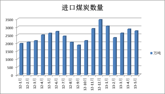 据海关总署发布的统计数据显示,2013年5月我国煤炭进口量达2757万吨,相比4月减少了12万吨,环比下降了3.9%,但是同比增长5.6%。目前我国2013年1~5月累计进口煤炭达1.36亿吨,累计同比增长20。9%。另一方面,经历了煤企、电企和进出口贸易商的激烈交锋,日前下发的《商品煤质量管理暂定办法(征求意见稿)》(下称《办法》)在修改后二度在业内征求意见,进口煤的限制门槛有所降低。业内不少人士认为,该规定落地的可能性很大,不过修改后的标准对中国煤炭进口的影响已经不大,并且在进口煤炭严重滞销、很难再有新增长的情况下,政策出台与否已无实际限制意义。