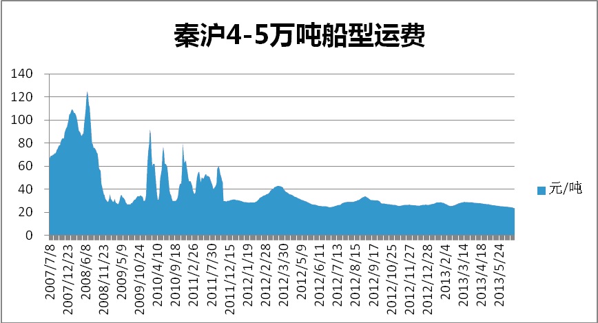 环渤海几个港口是我国“北煤南运”的海上大通道。据统计,2012年我国主要港口发运煤炭近7亿吨,大量的煤炭通过秦皇岛等主要港口运往华东、华南等地。可以说这条南北大通道是我国一条重要的战略能源大通道,在国民经济中发挥着重要作用。船舶运输煤炭最大的特点就是量大,价格低廉。有些可以直接运到用户的专用港口(或泊位)。但受铁路调入量,港口装卸能力,港口检修,天气,及突发事件等因素的影响,煤炭海运费价格呈现出很大的周期性的波动。