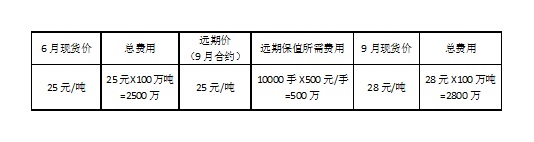 运用500万资金进行套保,实际到9月份运货时可节约300万元。