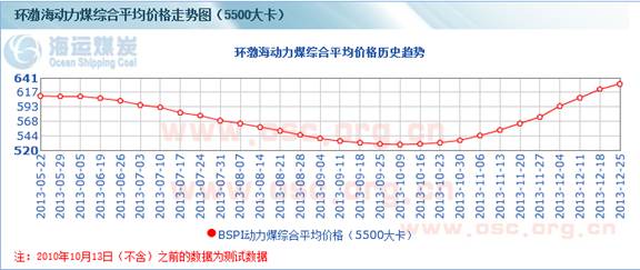 截止12月25日,环渤海动力煤价格为631元/吨。 今年8月份后,电厂耗煤增加,带动市场趋好。9、10月份,市场继续走好,下游需求保持旺盛,很明显已经不是简单的夏季过后的补库存举动,而是需求增加,电厂调进煤炭数量低于消耗数量、电厂库存回落、满足不了用煤需求造成的。而主因是宏观经济企稳向好、冬季取暖用煤需求增加、火力发电耗煤增加以及国际动力煤市场企稳回升等造成了动力煤价格的快速上涨。不过我司预计这一快速上涨的情况将很快出现根本性的变化,最主要的因素还是前文中提到的下游需求的减弱,电厂为了和煤企谈判明年的合同时占据上风从而减少自己的拉煤量以及国内煤价上涨导致需求方重新把购买力对准进口煤炭这些因素造成的影响。