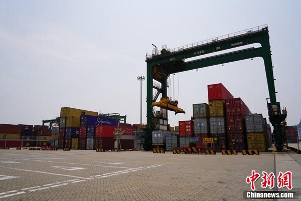天津港太平洋国际集装箱码头,繁忙的作业区。中新网记者 刘湃 摄