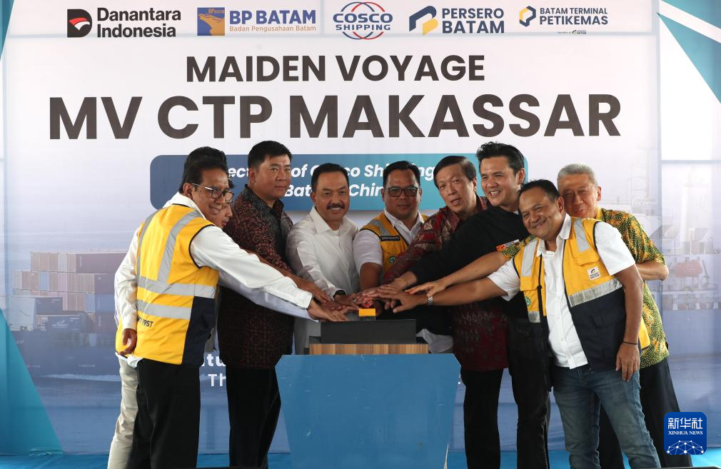 在印度尼西亚廖内群岛省巴淡岛港,伴随着船笛声,一艘集装箱货轮启航。这是中远海运集团新开辟的巴淡岛港至中国海南洋浦港直航航线的首航,标志着中国与东南亚之间的海上直连服务进一步拓展。