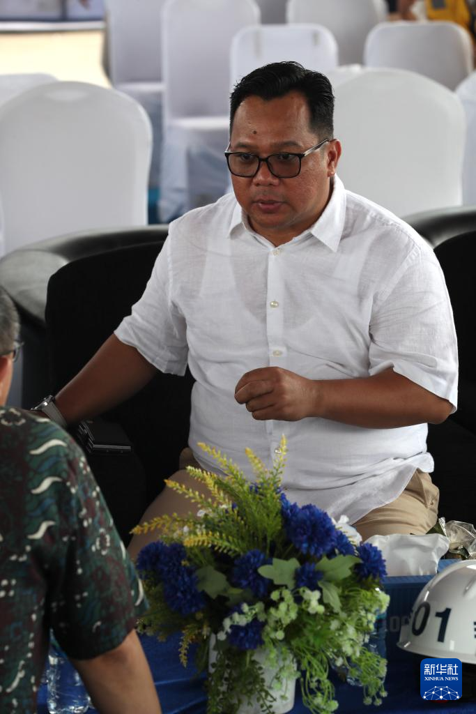 8月21日,在印度尼西亚巴淡岛港,负责巴淡岛港运营管理的巴淡国有公司董事长佐科·普拉塞蒂奥接受记者采访。新华社记者 岑云鹏 摄