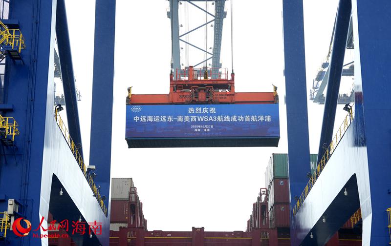 人民网洋浦10月28日电(枉源、符武平)10月27日,随着“中远亚洲”轮缓缓驶离,洋浦国际集装箱码头(以下简称“洋浦港”)迎来历史性一刻——中远海运远东-南美西航线成功首航洋浦。