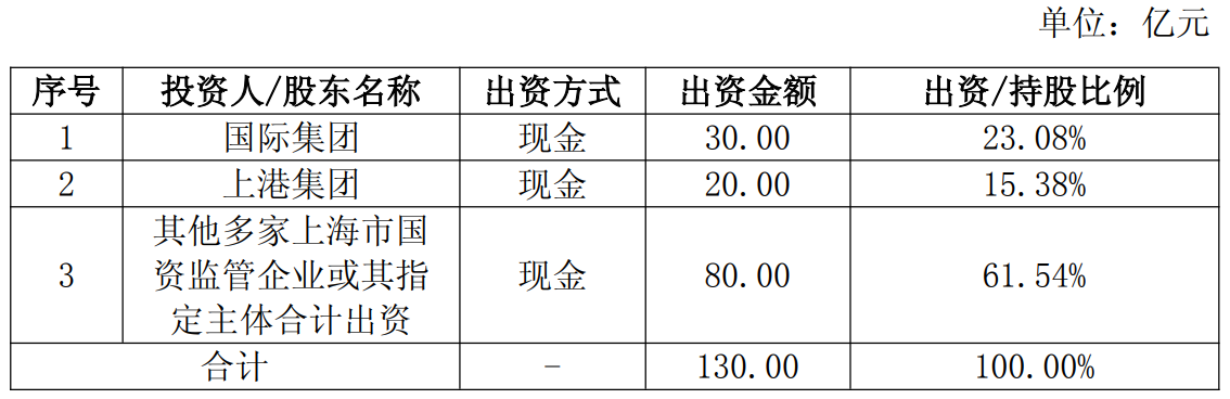 获悉,上海国际港务(集团)股份有限公司(以下简称“上港集团”或“公司”)11月13日发布公告称,为更好地发挥上港集团作为上海国际航运中心建设的重要主体作用和资源优势,进一步提升港口物流服务水平,上港集团拟以自有资金出资人民币20亿元,与上海国际集团有限公司(以下简称“国际集团”)等多家企业共同投资设立上海国茂控股有限公司(以下简称“上海国茂”),持股比例为15.38%。本次交易事项属于与关联人共同投资,构成关联交易。