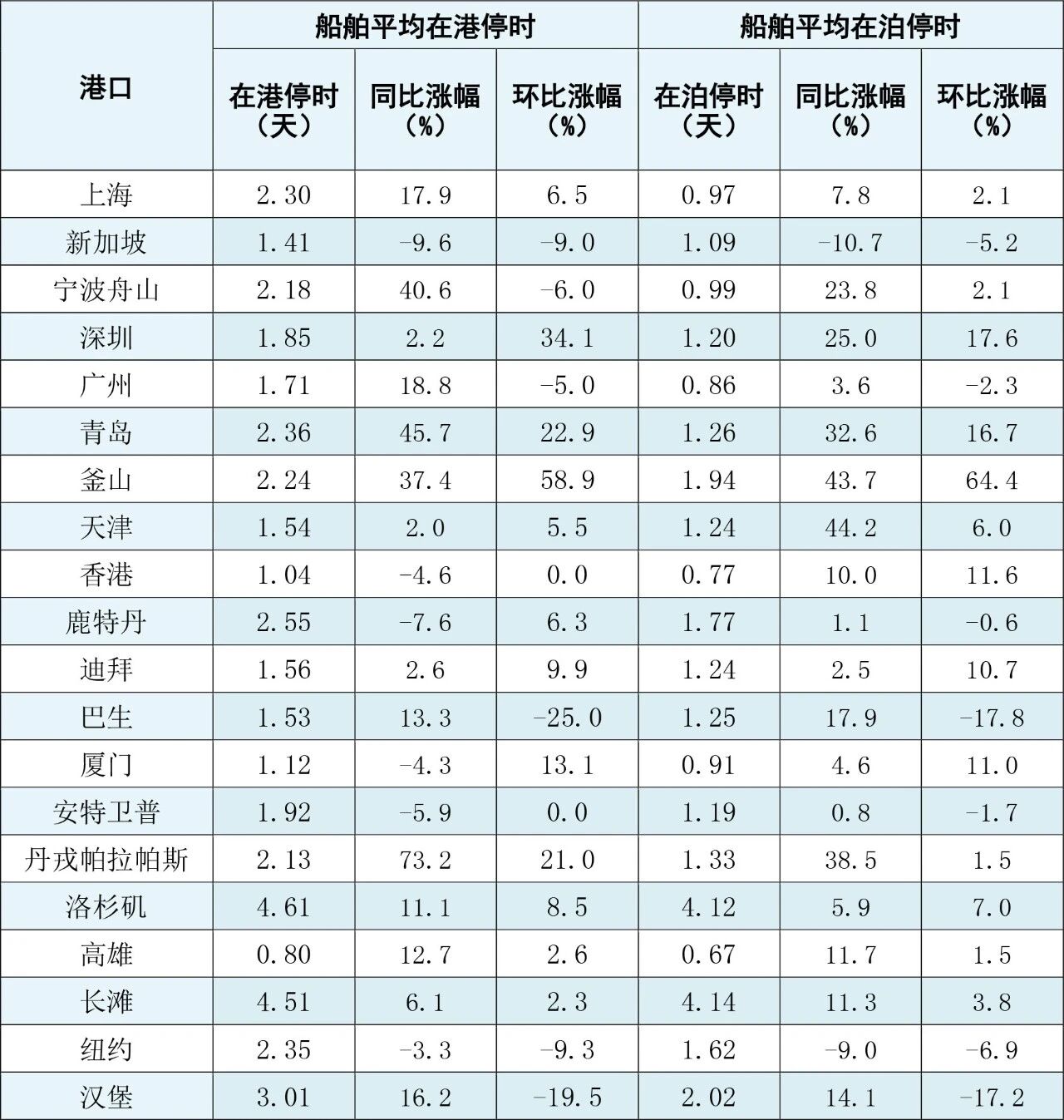 船舶在港时间是指船舶抵达港口待泊锚地到靠泊完成装卸作业离开泊位之间的总时长。该指标集中体现了港口设施设备、引航、调度、装卸、集疏运、口岸通关等综合效率。