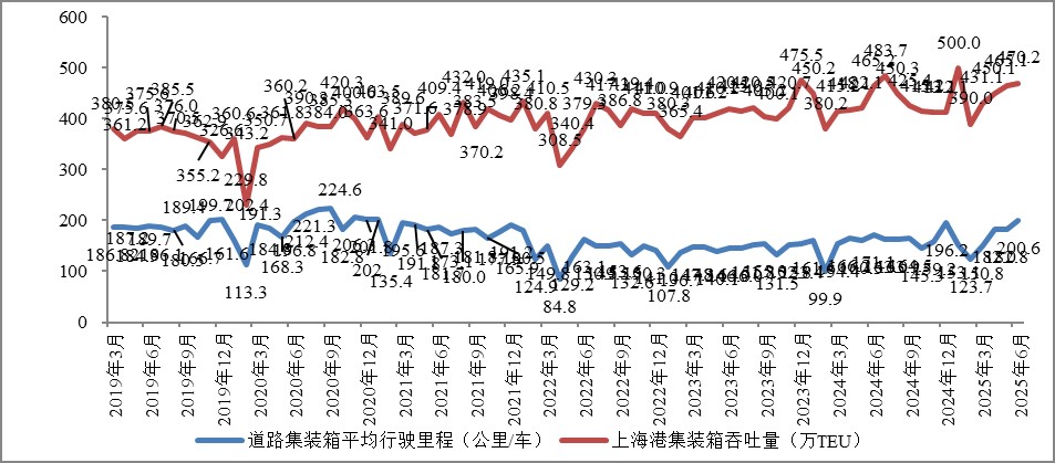 2025年06月份上海道路集装箱运输平均行驶里程