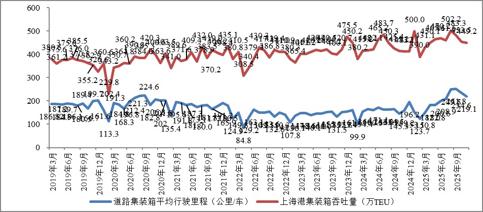 2025年11月份上海道路集装箱运输平均行驶里程